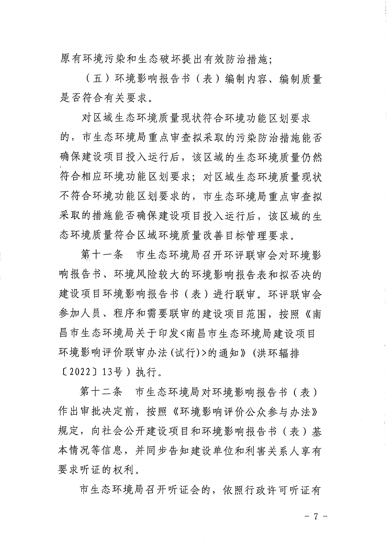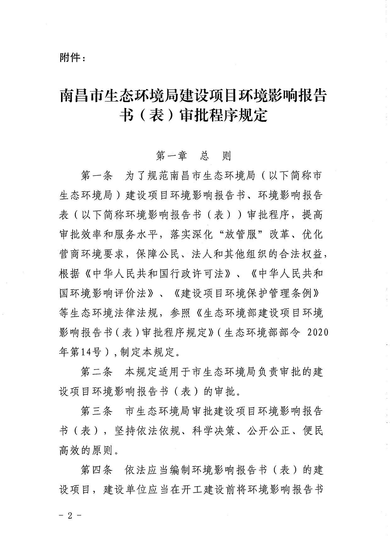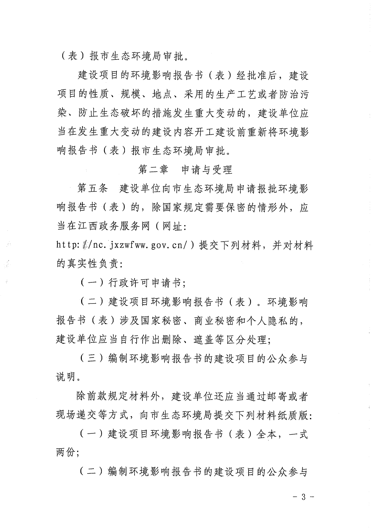 南昌市生态环境局建设项目环境影响报告书(表)审批程序规定