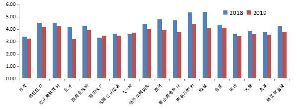 全市昼间达标路段长204189米,占路段总长的81.0%,路段达标率较2018年上升了6.1个百分点。