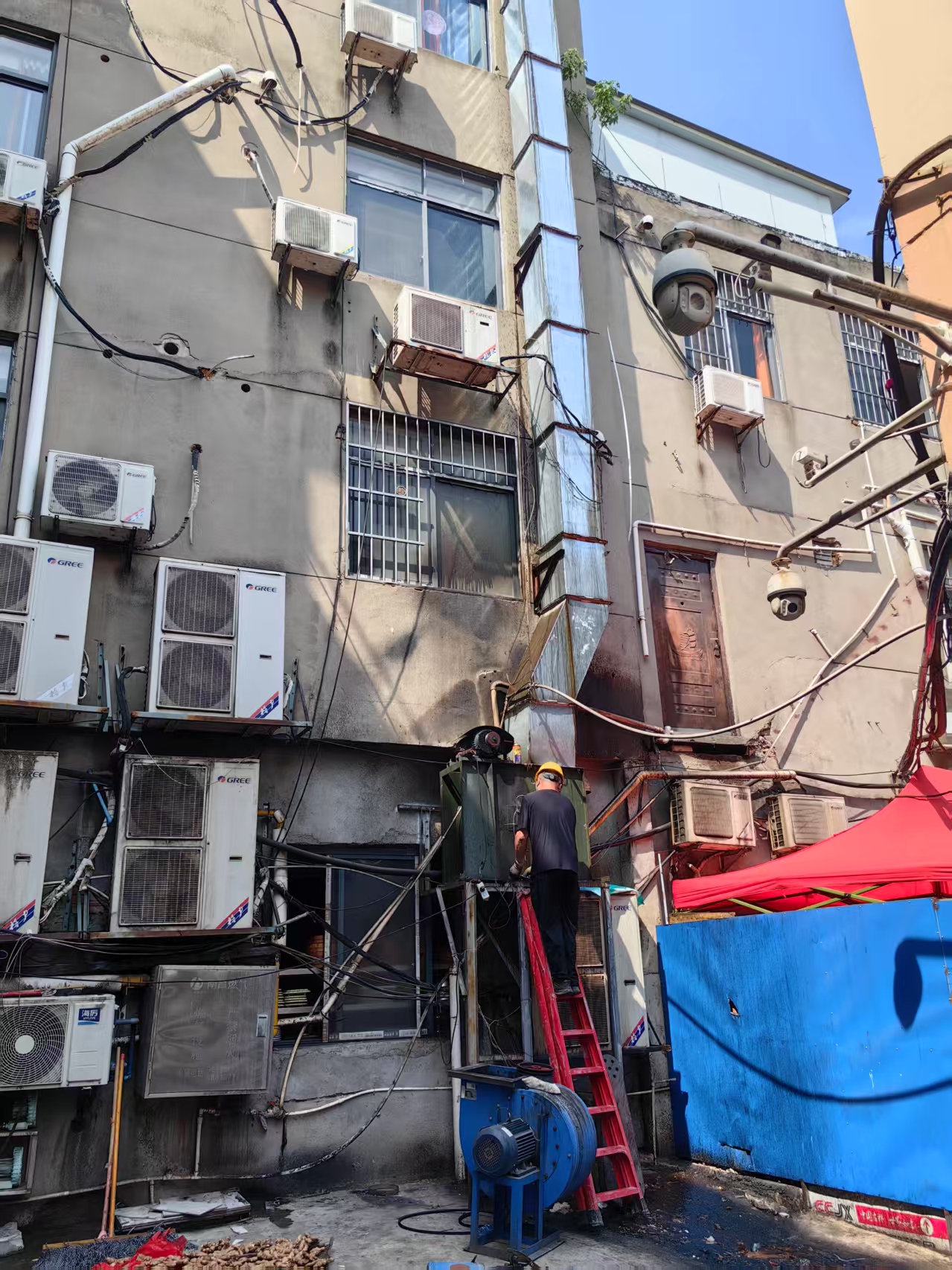 2025年5月8日16时执法人员到达现场,经查:红谷滩区百家喜宴烧菜馆因风机轴承损坏产生噪声影响附近居民生活。