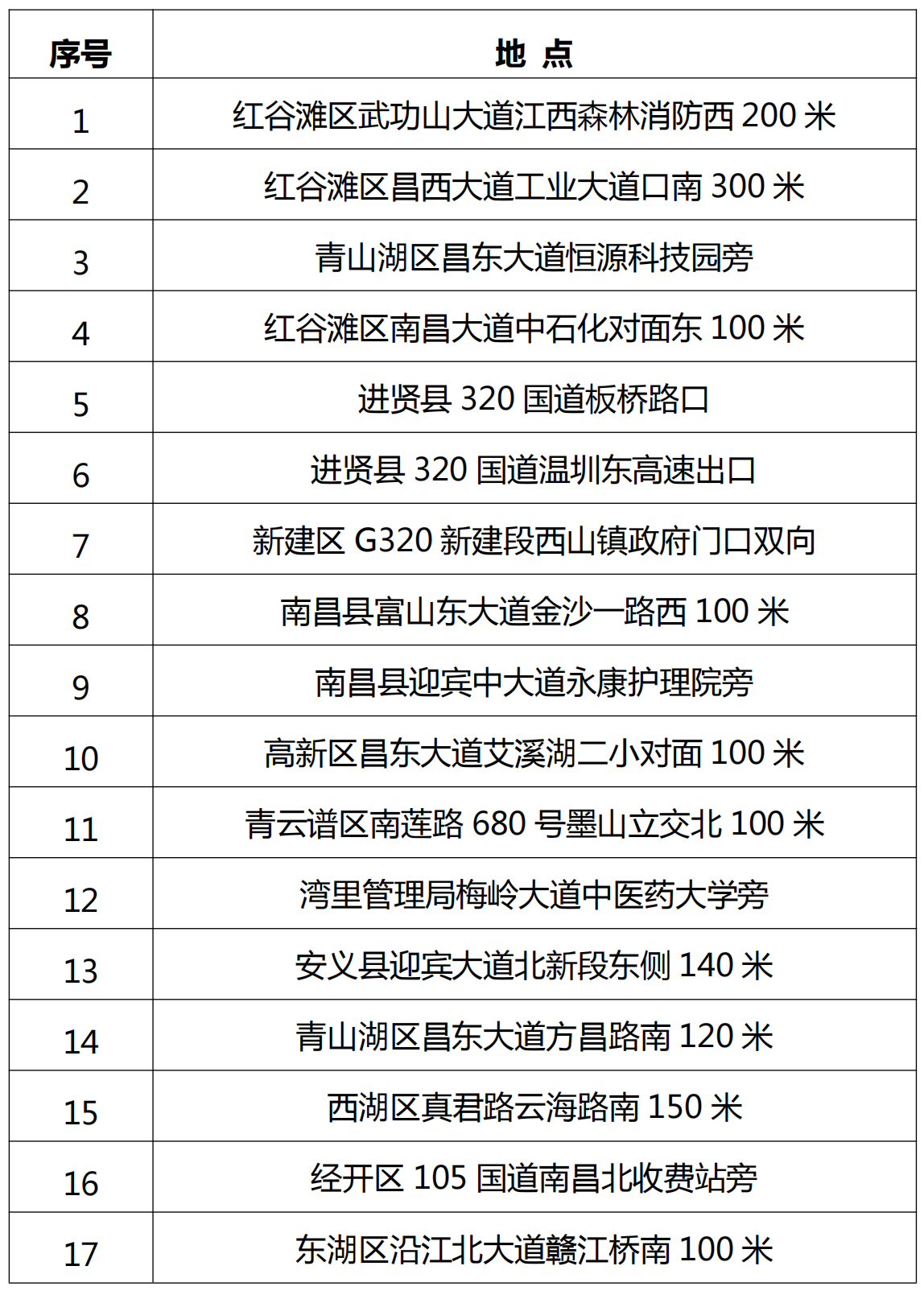为进一步强化机动车排放监管,贯彻落实《南昌市人民政府关于加强高排放机动车、非道路移动机械排放管理的通告》关于限制排放黑烟机动车行驶的有关要求,按照有关规定,现将17处黑烟车电子抓拍设备设置地点向社会公布。