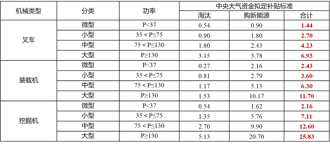 (4)老旧机动车和非道路移动机械淘汰。支持非营运国四及以下柴油货车淘汰补贴,及换购新能源货车补贴;支持国一非道路移动机械淘汰补贴,及换购新能源机械补贴。(老旧车辆淘汰需打包申报,申报补贴标准详见附表)。