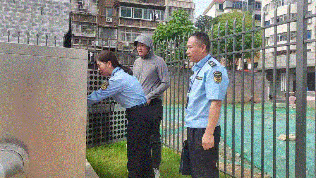 南昌市西湖生态环境局近日收到居民投诉,反映青山湖污水处理厂一处城市污水泵站异味严重。收到信访件后,西湖生态环境局第一时间赶往现场核实情况。经现场查看确认,该水泵站因离子发生器损坏,导致异味扩散,影响周边居民,当天下午责任单位已完成整改,臭味问题得到解决。从接到投诉到完成整改、再到现场复核整改情况,只用时48小时,获得了群众高度认可。图为执法人员现场督促更换失效的臭气处理器。