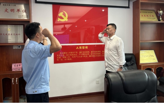 最后,小组全体党员在党徽下重温入党誓词,进一步激发了全体党员的党性意识,引导监督帮扶小组成员能够做到以实际行动为党旗争光、为党徽添彩。